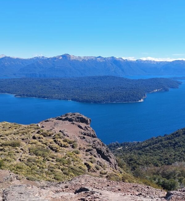 En la cima, una parada técnica de 40 minutos permite disfrutar del almuerzo al aire libre y contemplar la inmensidad de las montañas, las islas y los lagos patagónicos. El descenso se realiza por el mismo sendero, regresando hacia el punto de partida donde el chofer aguarda para el traslado final al alojamiento.